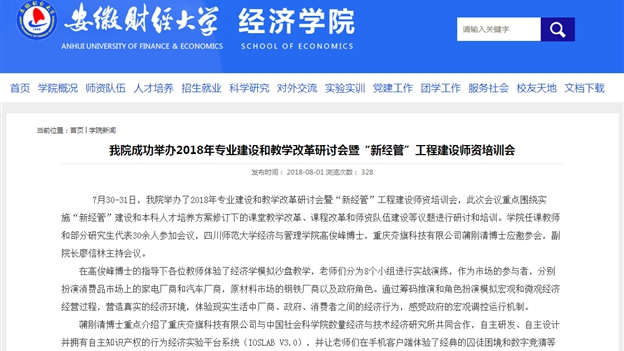 7月30-31日,我司蒲剛清博士應邀參加應邀參加安徽財經大學2018年專業建設和教學改革研討會暨“新經管”工程建設師資培訓會,此次會議重點圍繞實施“新經管”建設和本科人才培養方案修訂下的課堂教學改革、課程改革和師資隊伍建設等議題進行研討和培訓。學院任課教師和部分研究生代表30余人參加會議。